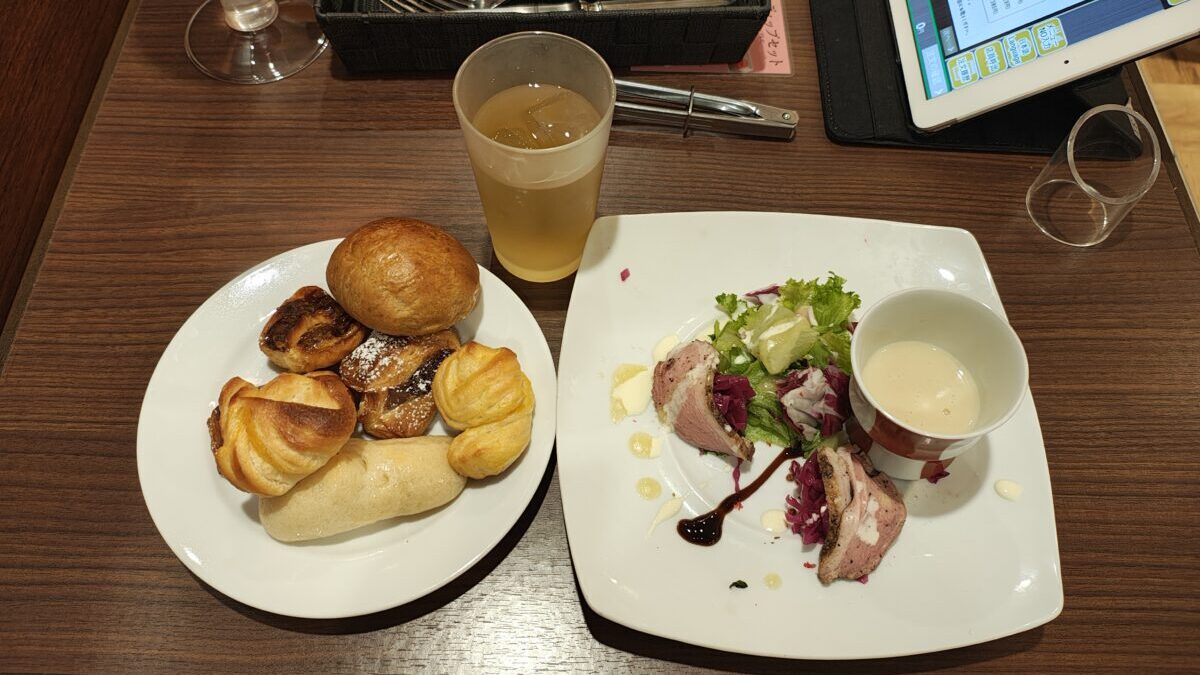 焼き立てパンの美味しさは言うに及ばず、前菜プレートの「合鴨と紫キャベツのマリネの冷製前菜」がとても美味でした!