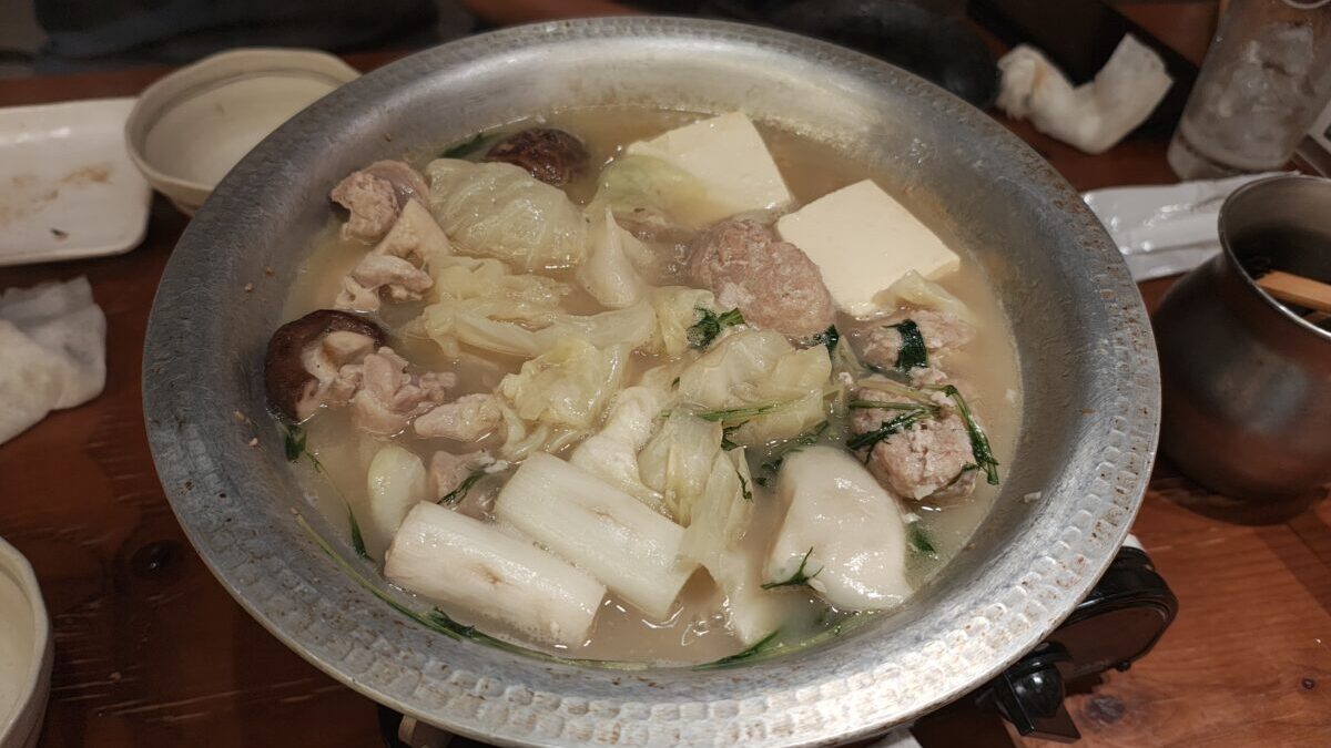 お品書き内容が『味濃いめ』『脂が乗っている』のが多めなので、ちょっとスッキリ食べたい・・という日には鍋もオススメです。こちらは博多水炊き。これはこれでコラーゲンたっぷり感はありますが。