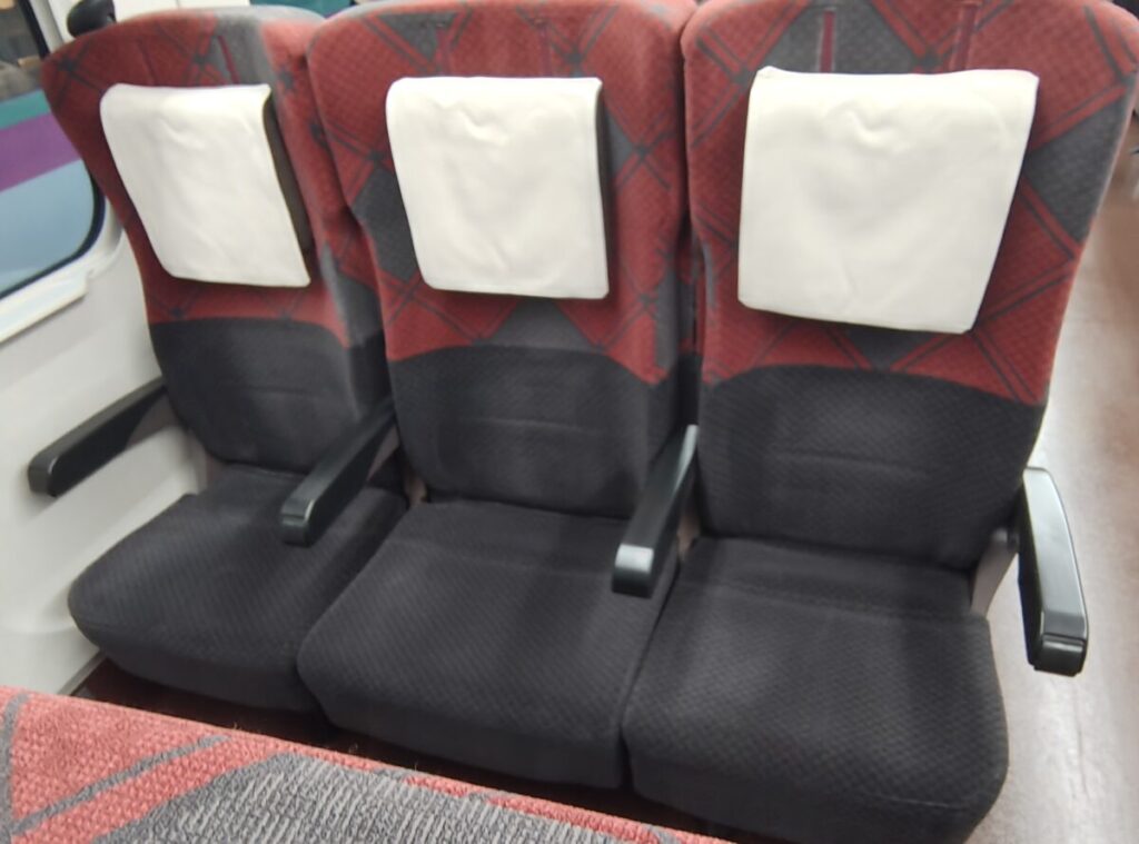 JR東日本の新幹線、枕の位置が変えられるのが素晴らしい。コンセントもすべての座席に装備されていました。