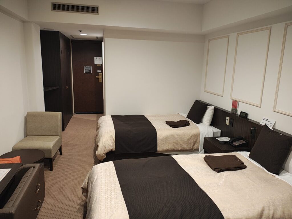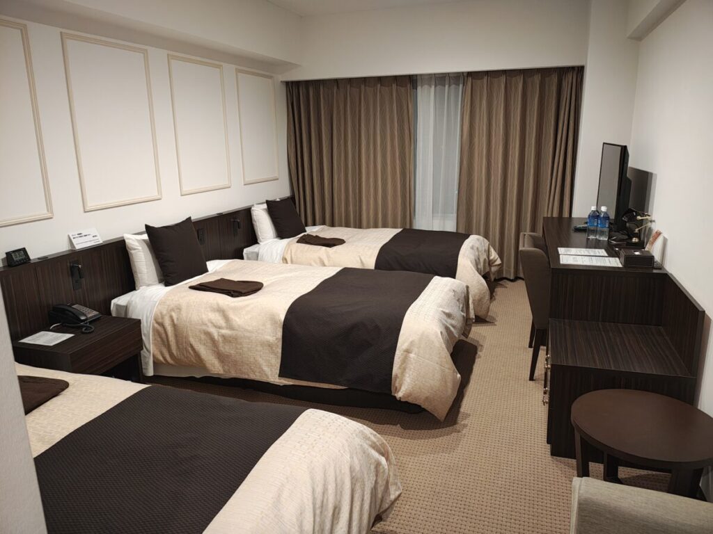 トリプルの室内は標準的な間取り。落ち着いた色調で高級感があります。