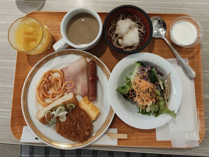 ビュッフェはイタリア軒伝統の味である「ミートソーススパゲティ」や「カレー」のほか、地元産野菜やご当地グルメがふんだんに揃えられいます。昨晩食べたタレカツやへぎそばも提供されているとは嬉しい誤算!