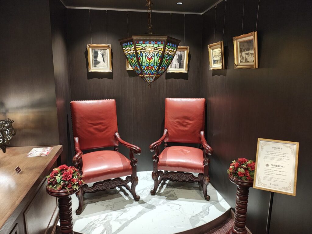 多くの新郎新婦に座っていただいたという、幸せの椅子もあります。結婚式に風格あるイタリア軒をチョイスするのはナイス判断かと。