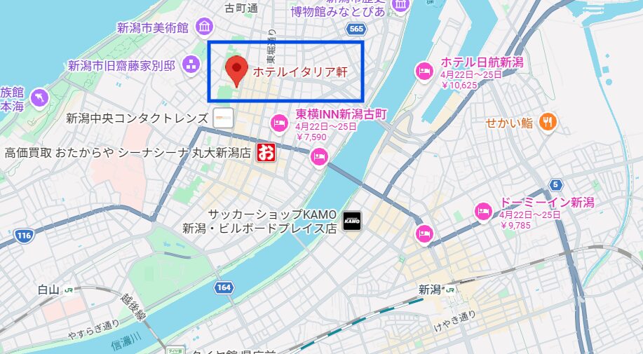 宿泊サイトを毎日チェックをしていたら、一休で「ホテル イタリア軒」が取れました!レストランみたいな名前ですが、新潟の有名な老舗ホテルです。