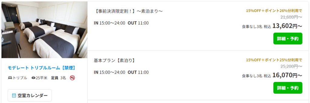 そりゃ3連休&トリプル部屋(2連泊)なんて空いてないですよね。