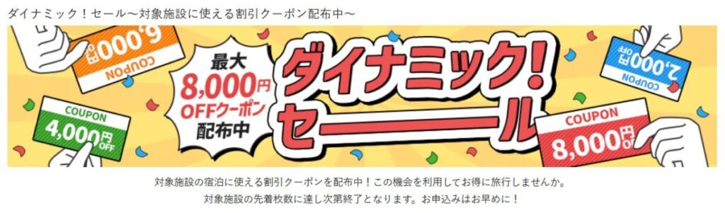 びゅうトラベルでは、定期的に「ダイナミック!セール」を開催しています。タイミングが合えば、これを利用するのがベストです。