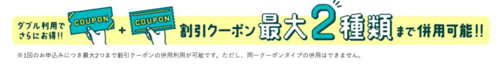 この3種類クーポンのクーポンですが、「2種類まで併用可能」です!