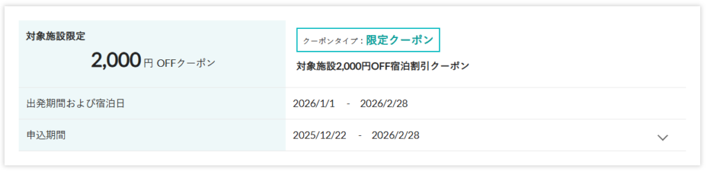 ②主に宿泊施設割引の「限定クーポン」
