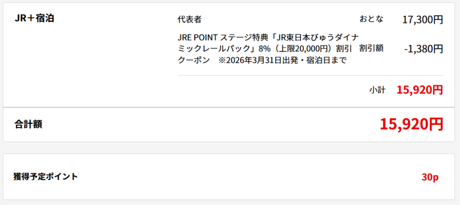 おそらく、びゅうダイナミックレールパックのJR運賃割引率(後述)が影響しているのだと思います
