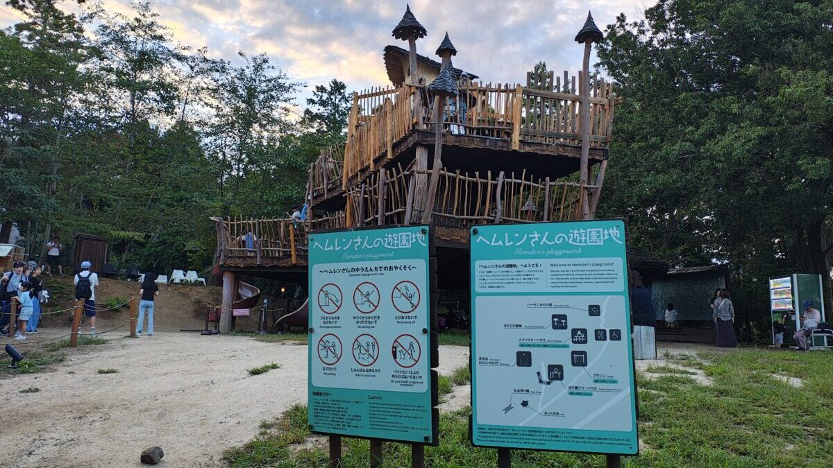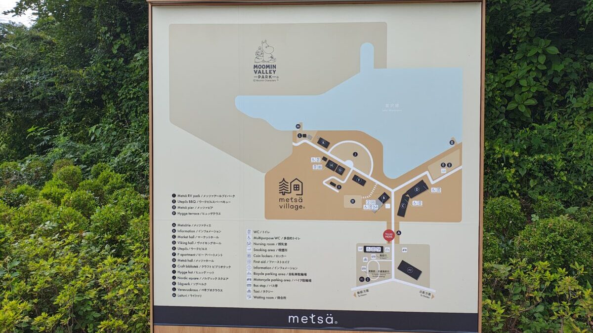 駐車場にはムーミンバレーパークの大まかな地図があり、それを見ると手前に「メッツァビレッジ」という村があるようです。16時の入館まで、そこで時間を潰すことにしました。