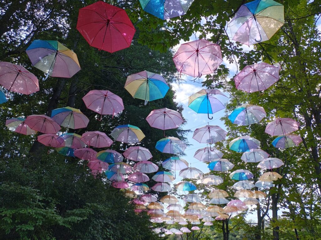 ムーミン谷では6月から「ムーミン谷とアンブレラ」というイベントを実施しており、歩道の上には色とりどりの傘が並んでいてとてもキレイ!