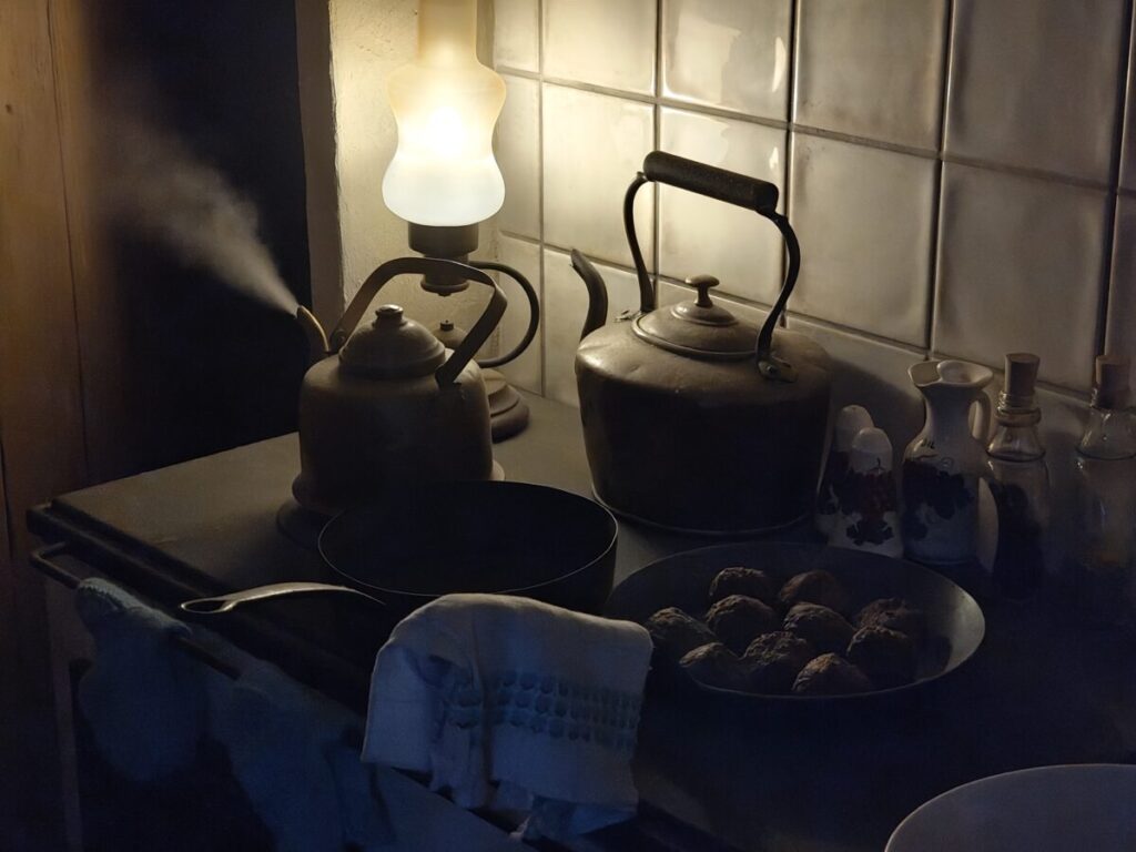 薄暗い感じの食卓やキッチンの再現が素晴らしい。北欧の雰囲気がよく出ています。