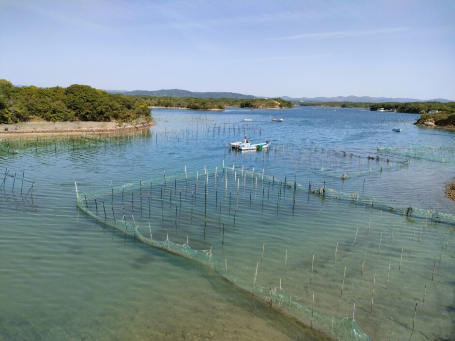 そして到着!おおぉ、近くで牡蠣(?)の養殖をしている風景が間近に見られます。