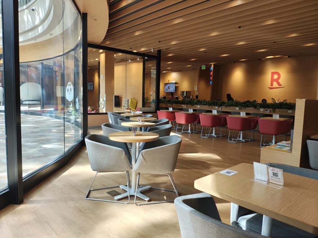 楽天ラウンジのように飲み物や電源のサービスはありませんが、ショッピングに疲れて一服するにはありがたい場所です。