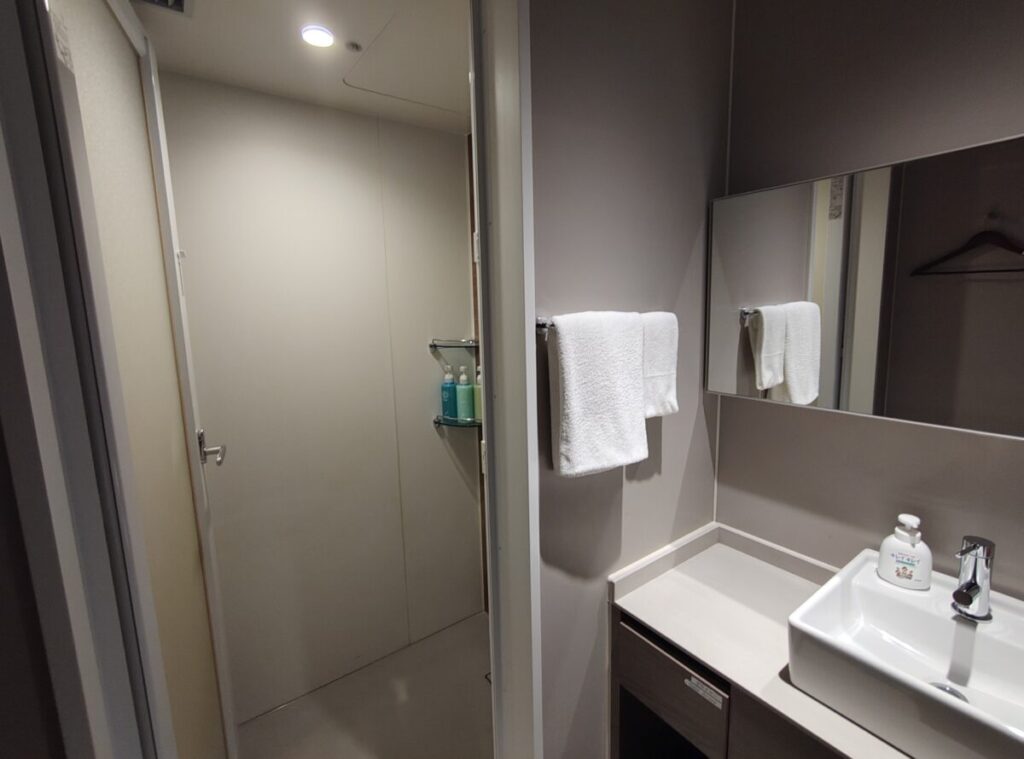 中に入ると、洗面台とシャワールームで分かれています。