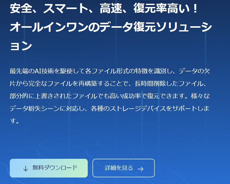その名の通りAIアルゴリズムを駆使することで、データ復元率98%を謳っています。