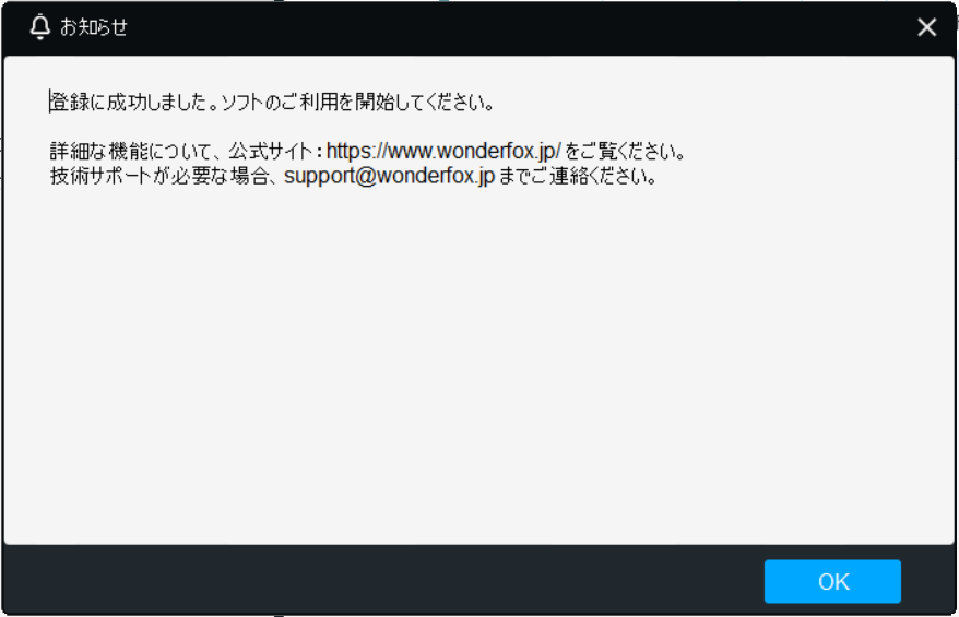 登録が成功したら以下の画面になるので、「OK」をクリックします。